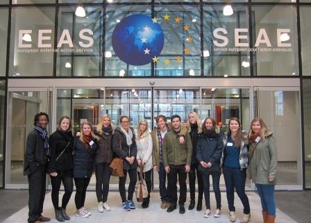 Med lunsj i magen forflyttet gruppen seg til European External Action Service (EEAS) som er like ved Norway House. Her måtte en gjennom sikkerhetskontrollen for å få adgang til bygget. Vi ble så tatt godt i mot av Ross Church som holdt et godt foredrag om hva de fortar seg i dette bygget og muligheter for praktikantstillinger. Deretter kom Stacey Vickers og fortalte om bistandshjelpen EU driver med. Det viktigste og mest imponerende for gruppen å ta med seg videre var at EU er den største giveren i verden.